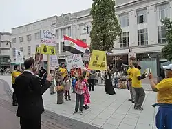 On 8 July, following reports that many fighters in Syria were returning in support of the Muslim Brotherhood, Egypt slapped restrictions on Syrians entering the country and required them to obtain visas before entering the country.[151] An arrest warrant was issued against Mohamed Badie also as the party refused to join a transitional government.[152] The Investigative Reporting Program at the University of California at Berkeley showed that a State Department programme ostensible to support democracy provided funds to activists and politicians for fomenting unrest in Egypt after the ouster of President Hosni Mubarak in February 2011.[153] The Muslim Brotherhood vowed to continue its resistance to the military's ouster of Morsi. In a statement it disavowed itself from an assassination attempt against a senior army commander in the Sinai Peninsula on 10 July and said it adheres to peaceful measures. The statement also read: "We will continue our peaceful resistance to the bloody military coup against constitutional legitimacy. We trust that the peaceful and popular will of the people shall triumph over force and oppression."[154] The public prosecutor issued a freeze on the assets of the Muslim Brotherhood's leaders, as well as other supporters pending investigations in ongoing cases related to events in al-Mokatam, al-Nahda square and the Republican Guards Club. This would affect Mohamed Badie, Khairat al-Shater, Mahmoud Ezzat, Mohammed Mahdi Akef, Saad El-Katatni, Essam el-Erian, Mohamed Elbeltagy and the Muslim Brotherhood's allies, including Essam Sultan, Assem Abdul Majed, Safwat Hegazi and Hazem Salah Abu Ismail, will also be affected by the freeze.[155]