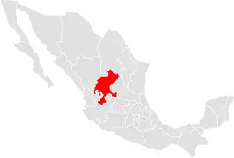 The location of the state of Zacatecas in Mexico |