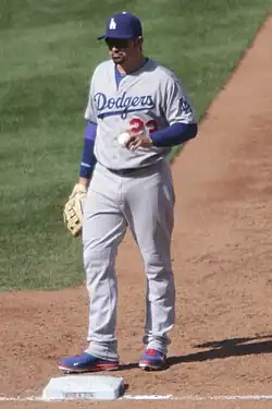 On October 31, 2013, several Dodgers automatically became free agents the morning after the 2013 World Series ended. They included pitchers J. P. Howell, Carlos Mármol, Ricky Nolasco, Edinson Vólquez, and Brian Wilson, third baseman Juan Uribe and utility players Jerry Hairston Jr., Nick Punto, Skip Schumaker, and Michael Young.[16] The same day, the Dodgers declined their 2014 options on second baseman Mark Ellis and pitcher Chris Capuano, making them both free agents as well.[17] Utility player Elián Herrera was claimed off waivers by the Milwaukee Brewers on November 5.[18] On November 20, relief pitcher Shawn Tolleson was claimed off waivers by the Texas Rangers.[19] On December 3, the Dodgers chose not to tender a contract to arbitration-eligible pitcher Ronald Belisario, making him a free agent.[20]