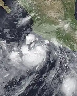 A river near Coyuca de Benítez overflowed its banks. Three trees were brought down and a vehicle in Acapulco was destroyed,[21] near where one person was killed.[22] In Colima, minor landslides occurred, resulting in the closure of Federal Highway 200.[23] Two people perished in Michoacán[24] while several roads were destroyed in Zitácuaro.[25]