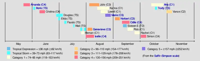 - ^ Berg, Robbie (April 15, 2015). Summary: 2014 Eastern Pacific Hurricane Season (PDF) (Report). Miami, Florida: National Hurricane Center. Retrieved January 28, 2024.