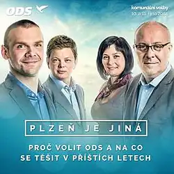 - ^ Beneš, Richard. "ODS vstupuje do ostré volební kampaně vyladěná do modra a se sloganem "Plzeň je jiná"". Region pod Lupou (in Czech). Retrieved 9 June 2017.