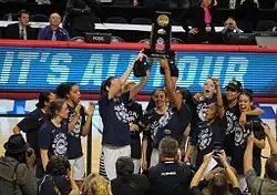 The 2015–16 UConn Huskies women's basketball team represented the University of Connecticut in the 2015–16 NCAA Division I women's basketball season. The Huskies, led by thirty first year head coach Geno Auriemma, won the NCAA tournament and went undefeated. With their eleventh championship win in 2016, the UConn Huskies became the first NCAA Division I women's basketball team to win four straight national championships.[1]