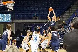 UConn faced DePaul, a team they had regularly played when both were in the Big East; it was now an out-of-conference game. DePaul came into the game ranked # 23 and having won their prior two games by a combined margin of almost 100 points. DePaul's coach Doug Bruno used hockey style subbing, taking out all five players and sending in five new players, to keep the players fresh. DePaul is a proficient three-point shooting team, and hit six of their first twelve three-point attempts. UConn led by seven at one point, but the Blue Demons came back to take a one-point lead 34–33. The Huskies led at the half, but only by three points, 44–41. The game remained close until Katie Lou Samuelson, who had hardly played in the first three quarters, came in and scored ten points in the final quarter to help put the game out of reach. UConn won the game 86–70.[28]