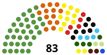 The 83 members of the National Assembly are elected in 24 multi-member constituencies, based on the country's departments. Seats are allocated using proportional representation based on the simple quotient, with remaining seats assigned using the largest remainder method.[2]