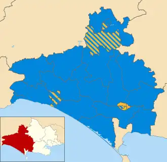 44 seats to West Dorset District Council 23 seats needed for a majority | ||||||||||||||||||||||||||||