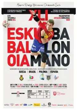 The 2016 International Tournament of Spain was the 41st edition of the International Tournament of Spain and the 15th edition with the name of Memorial Domingo Bárcenas, held in Irun, Spain from 8 January to 10 January, as a friendly handball tournament organized by the Royal Spanish Handball Federation as a preparation of the host nation to the 2016 European Men's Handball Championship.[2]