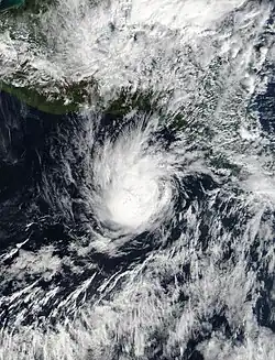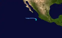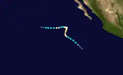 On June 4, the National Hurricane Center began monitoring an area for possible development.[19] Over the next few days, the chances of the storm forming were low. Unexpectedly, however, on June 6, advisories began to be issued on Tropical Depression One-E.[20][21] This led the Government of Mexico to issue a Tropical Storm Watch for its coast.[22] On June 7, the watch was removed as the storm weakened slightly.[23] Early on June 8, the storm made landfall in Mexico near the Gulf of Tehuantepec and dissipated.[24]