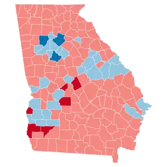 The fast-growing and increasingly diverse Atlanta metropolitan area in particular shifted strongly towards the Democratic Party, with Clinton becoming the first Democrat to win Henry County since Georgia native Jimmy Carter in 1980, and Cobb and Gwinnett counties since 1976 (when Carter won every county in the state).
