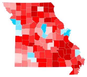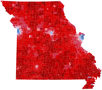 Although Trump's victory in the state was expected, Missouri had one of the larger shifts towards Trump, shifting rightward by 9%. Trump's 18.5% margin of victory in Missouri was the largest for a Republican since Ronald Reagan in 1984.