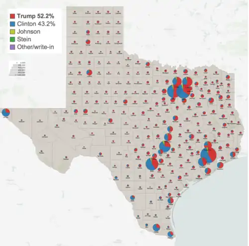 - ^ Svitek, Patrick (November 9, 2016). "Donald Trump wins Texas, leads Hillary Clinton by 9 points". The Texas Tribune. Retrieved December 25, 2018.