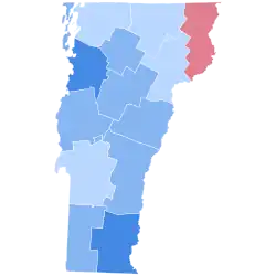 Vermont Senator and Democratic primary candidate Bernie Sanders, who had endorsed Clinton after she won the primary, received 5.7% of the vote through write-ins, the highest write-in draft campaign percentage for a statewide presidential candidate in history.[3] Libertarian nominee Gary Johnson, received 3.1%, and Green Party nominee Jill Stein received 2.1%.[4] Trump's 29.76% vote share is the worst for a Republican presidential nominee in Vermont history.