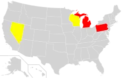 In accordance with the Electoral Count Act, all states must certify and submit their final election results to the electoral college six days before the college meets. Under this "safe harbor" provision, any recount efforts for the 2016 election had to be completed before the deadline of December 13, 2016.[9] The recount in Nevada went forward and were completed on schedule, resulting in only minor changes to vote tallies. Wisconsin permitted individual counties to decide whether to provide paper ballots for recount or merely to rerun the same computer totals.[10][11] A recount in Michigan was allowed to proceed for three days before being halted by court order,[12] and a federal lawsuit to compel a recount in Pennsylvania was dismissed.[13] While the partial Michigan recount did unearth some instances of improper ballot handling and possible voter fraud,[14] no indications of widespread hacking were discovered, and the overall outcome of the election remained unchanged, despite the evidence that the voting machines were old and faulty, possibly counting as "blank" ballots many that contained visually clear indications of presidential choice.[15][16][10][11]