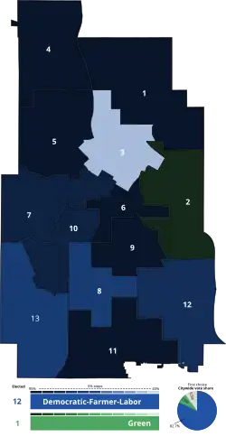 All 13 seats on the Minneapolis City Council 7 seats needed for a majority | ||||||||||||||||||||||||||||||||||
