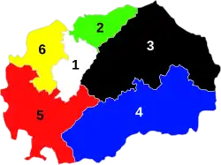 Of the 123 seats in the Assembly of the Republic, 120 are elected from six 20-seat constituencies in North Macedonia using closed list proportional representation, with seats allocated using the d'Hondt method. The remaining three seats are elected by Macedonians living abroad,[15] but are only filled if the number of votes exceeds that of the elected candidate with the fewest votes in North Macedonia in the previous election. If a list crosses this threshold, it wins one seat; to win two seats, a list needs to win twice the number of votes, and to win three seats the threshold is three times the number of votes. These seats were not filled in the 2016 elections due to insufficient turnout.[16]