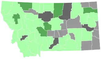 ![]() ![]() Daines: 50–60% 60–70% 70–80% 80–90% >90% Bullock: 50–60% 60–70% 70–80% 80–90% >90% No data | |||||||||||||||||