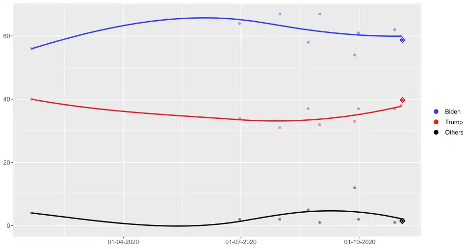 270 to Win[30] | October 5 – November 1, 2020 | November 3, 2020 | 57.5% | 35.5% | 7.0% | Biden +22.0 |