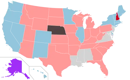![]() Map of lower house elections: Democrats retained control Republicans gained control Republicans retained control Coalition retained control Non-partisan legislature No regularly-scheduled elections |