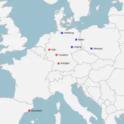 ^The attendances for Leipzig - Cologne (July 4), Hamburg - Berlin (July 11), Berlin - Wroclaw (July 18), Hamburg - Barcelona (July 31), Cologne - Wroclaw (Aug 1), Leipzig - Berlin (Aug 1), Hamburg - Wroclaw (Aug 22) and Berlin - Barcelona (Aug 22) haven't been announced