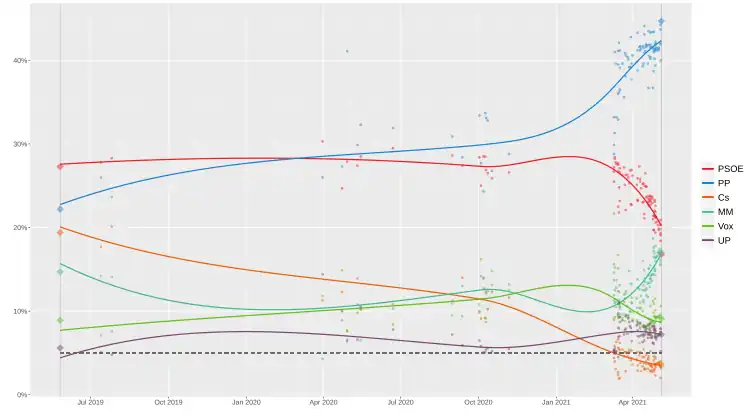 - ^ "La encuesta de EL PERIÓDICO sobre las elecciones en Madrid, al completo". El Periódico de Catalunya (in Spanish). 19 April 2021.