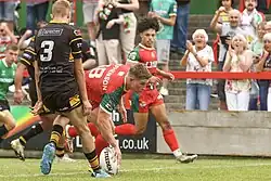 A return to Cougar Park the following week saw the visit of Swinton Lions. A dominant performance saw Swinton prevented from scoring while a Mo Agoro double helped secure a 30–0 win.[27]