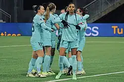 The shortlist for the FIFA FIFPro Women's World 11 was announced on 3 January 2024, with eight Barcelona players in the final 23: Bronze, León and Paredes as defenders, Bonmatí, Pina, Rolfö and Walsh as midfielders, and Paralluelo as a forward.[137] The next day, the IFFHS published their Women's World Team 2023, in which the team was represented by two players: Bonmatí made her third consecutive appearance and Paralluelo made her first appearance in the selection.[138] In other end of 2023 lists announced in January 2024, fifteen Barcelona players made them the most-featured club on the list of The 100 Best Female Footballers in the World, including six – Bonmatí at number 1, Paralluelo (3), Walsh (4), Rolfö (5), Graham Hansen (7), and León (8) – in the Top 10;[139] and the club was the most-represented in the voting list for the EA Sports FC 24 Women's Team of the Year (TOTY), the inaugural women's TOTY in the franchise, with ten players nominated.[140][141] The Best FIFA Football Awards were held on 15 January. Of Barcelona's major nominees, Bonmatí won The Best FIFA Women's Player for the year 2023,[142] and also made her first appearance in the FIFA FIFPRO Women's World 11. Bronze and Walsh also featured in the Women's World 11, for their sixth and second appearances, respectively.[143]