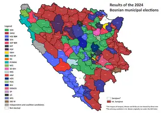 - ^ N.Ž. (20 October 2024). "Preliminarni rezultati u četiri općine daju jasnu sliku: Bez promjene na vladajućim pozicijama" (in Bosnian). Klix.ba. Retrieved 20 October 2024.