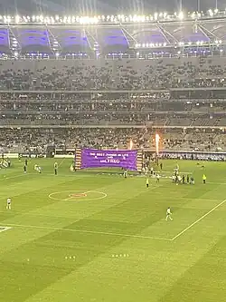 ![]() Fremantle going onto the ground in Round 17 | |
