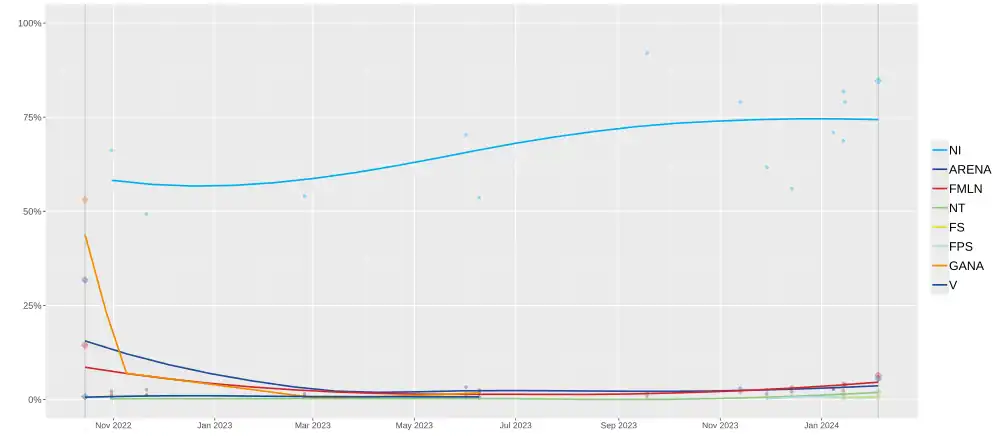 - ^ Alfaro, Xiomara (4 February 2024). "En Vivo: Nayib Bukele con Amplia Ventaja con el 31% de Actas Procesadas, Según el TSE" [Live: Nayib Bukele with High Support at 31% of Votes Processed, According to the TSE]. El Diario de Hoy (in Spanish). Retrieved 4 February 2024.