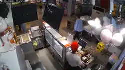 ![]() The perpetrator roaming the supermarket with knives during the attack | |