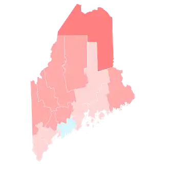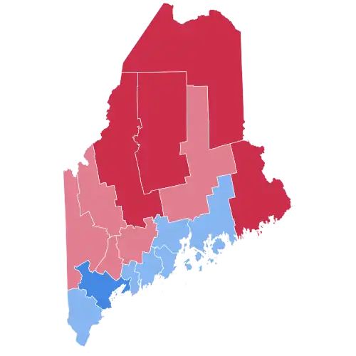 All but two counties swung Republican compared to 2020, and Trump flipped Kennebec County, which he had won in 2016 but narrowly lost in 2020. However, the state trended (relative to the national popular vote) 3.9 points towards the Democrats, remaining non-competitively blue even as neighboring New Hampshire was decided rather narrowly. While every state in the union shifted toward Donald Trump in the 2024 election, Maine had one of the smallest such shifts.[35][36] Trump was the first Republican since George H.W. Bush to win Kennebec with a majority, winning it in 2016 on a plurality. It was also the first time since 2012 that the county was won by a majority, with Obama carrying it with 55%.