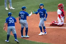 From June 30 to July 3, the Blue Jays won all four games against the New York Yankees at home and by doing so, overtook them for first place in the AL East.[12] On July 21, the Blue Jays set a franchise record by winning their 11th straight game at home, beating the Yankees in the first game of another three-game set against them.[13]