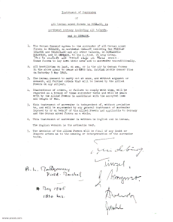 Two days after the surrender of the Northwest High Command to the British 21st Army Group, Generaloberst Blaskowitz surrendered his command to I Canadian Corps' Lieutenant-General Charles Foulkes at Wageningen on 5 May 1945 (documents typed and signed the next day, as no typewriter had been available), effectively ending the war in the Netherlands.[4]