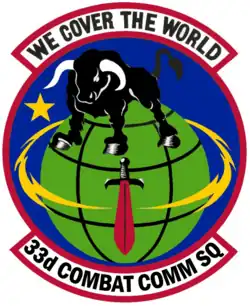 The 33d Combat Communications Squadron (33 CCS) was a United States Air Force combat communications squadron, located at Tinker AFB. They deployed quality communications-computer systems and air traffic services for military operations and emergency missions under hostile and base conditions anytime, anywhere. The 33d CCS was inactivated as part of the overall inactivation of the 3 CCG (Combat Communications Group) in May 2012. In January 2013 the 33d was unofficially merged with the 31st CCS as part of the inactivation proceedings. The unit is expecting to be completely inactivated no later than October 2013.[1][2][3][4]