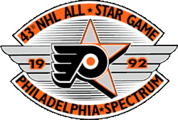 The 43rd National Hockey League All-Star Game was contested at The Spectrum in Philadelphia on 18 January 1992. It featured 16 goals as the Campbell Conference defeated the Wales Conference, 10–6. Brett Hull was named as the All-Star M.V.P. by recording two goals and one assist, while playing on a line with Los Angeles Kings' Wayne Gretzky and Luc Robitaille. This was also the first All-Star Game in which the San Jose Sharks sent a representative.