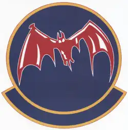 - ^ Approved 11 September 1944. Description: Over and through a yellow lemon disc, border triparted red, white, and blue, a prehistoric bat, in flight, red and white, with wings black, trimmed yellow, snorting steam from the nostrils, and grasping a small black aerial bomb in each foot.