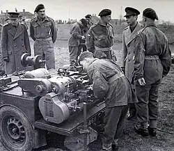 In November, XXX Corps attacked south-eastwards out of The Island towards Geilenkirchen (Operation Clipper), using 43rd Division and the US 84th Division.[80][81] In preparation for the attack, 43rd Divisional Engineers had to lift a defensive minefield previously laid by 84th Division. 'By the morning of 14 November, 204 Fd Co had picked up a considerable number of these American mines and loaded them on lorries. Major Evill, the Company Commander, decided to dump them near the Custom House on the German border, where 129 Brigade Headquarters was established'. During the afternoon some 700 of these mines exploded simultaneously, killing 14 sappers of No 1 Platoon, wounding six others and fatally injuring the brigade commander, Brig G.H.L. Mole.[82]