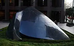 In the plaza the 200-ton black Swedish granite sculpture "Transcendence" by Masayuki Nagare is known as the "Banker's Heart".[11] Nearly the entire block—the skyscraper, the banking hall, the plaza, the stairways, and the sidewalks—is clad in costly polished or rough carnelian granite. A restaurant, the "Carnelian Room," was on the 52nd floor. The elevator to this restaurant is one of the few publicly accessible high-speed elevators in San Francisco. The restaurant closed at midnight New Year's Eve 2009.[12]