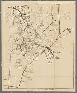 - ^ Reginald Pelham Bolton (1912). "Map 3; Werpoes, A Village of the Manhattan Indians" (Map). Indian Paths in the Great Metropolis by Reginald Pelham Bolton. New York, NY: A.R. Ohman Map Co. Retrieved March 3, 2025.