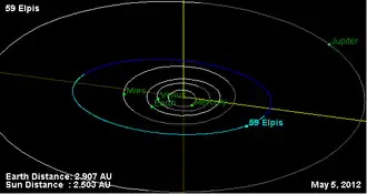 - ^ a b c d e "JPL Small-Body Database Browser: 59 Elpis" (2011-09-01 last obs). Jet Propulsion Laboratory. Retrieved 26 January 2012.