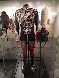 Lord Churchill died on 10 March 1845 and George Spencer-Churchill, 6th Duke of Marlborough was gazetted to take over as Lt-Col Commandant on 20 March 1845; the 2nd Lord Churchill was appointed second Lt-Col on 5 April 1847.[11][12] The Duke's younger son, Lord Alfred Spencer-Churchill, who had served in the 4th Light Dragoons and 83rd Foot, was appointed adjutant on 21 October 1848, and several other members of the Spencer-Churchill family and their relatives served as officers in the regiment, which by now consisted of six troops. Several of the officers gave Blenheim Palace as their address, and the regiment was officially headquartered at nearby Woodstock.[11][13] After the 6th Duke died in 1857, Lord Churchill succeeded as Lt-Col Commandant and Lord Alfred Spencer-Churchill became second Lt-Col on 25 April 1860.[13][14] Lieutenant-Col Henry Barnett took over the command on 8 May 1866, and later became the regiment's first Honorary Colonel.[13]