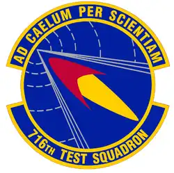 The United States Air Force's 716th Test Squadron is a test and evaluation unit located at Arnold Air Force Base, Tennessee. The squadron was first activated as the 6516th Logistics (Test) Squadron in 1986 at Edwards Air Force Base, California. It was inactivated at Edwards in 1997, but reactivated ad Arnold Air Force Base, Tennessee in 2006. It was inactivated in 2010, but reactivated in May 2022.