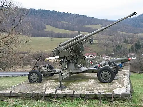 The 85 mm air defense gun M1939 (52-K) (Russian: 85-мм зенитная пушка обр. 1939 г. (52-К))[3] was an 85 mm (3.3 in) Soviet anti-aircraft gun used in World War II.