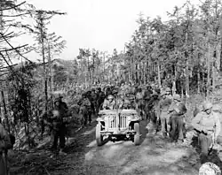 On 15 May 1942, five months after the United States entered World War II, the 85th Infantry Division was ordered to active duty at Camp Shelby, Mississippi, under the command of Major General Wade H. Haislip, a veteran of World War I. The division was organized around a cadre of officers and men from the 2nd Infantry Division, and training began in June 1942 at Camp Shelby. In April 1943, it participated in large-scale army training in the Louisiana Maneuvers near Leesville, Louisiana. In August, the division was moved to Camp Coxcomb, California for desert warfare training. In October, the division was transferred to Fort Dix, New Jersey, for final preparations before shipment overseas. Major General John B. Coulter succeeded Haislip as the 85th's commander and retained this position throughout the war. The Assistant Division Commander (ADC) throughout the war was Brigadier General Lee S. Gerow, the younger brother of General Leonard T. Gerow.[7] [8] [9][10]