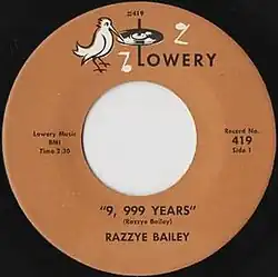 "9,999,999 Tears" is a 1976 hit single by Dickey Lee. The song was written and originally recorded by American country music artist Razzy Bailey.[1] Originally entitled "9,999,999 Years", it was released as a non-album single in 1966 but did not reach the charts.