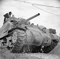 The Brigade was nominally independent but was placed under command of the 2nd New Zealand Division specifically for the El Alamein battle. Following permission given by the New Zealanders, they proudly painted the Kiwis' divisional sign on their tanks.[1] The NZ infantry gained their objectives, but as with Operation Lightfoot on the first day of the battle, lanes could not be cleared through the minefields until night was almost over. 9th Armoured Brigade was forced to make its attack silhouetted by the early daylight. As dawn came on 2 November, tank after tank was hit by the German 88 mm guns that kept firing through seven air attacks. The 9th never reached their objective. In fact, they took 75 percent casualties and lost 102 of their 128 tanks. Nevertheless, they breached the gun line and the 1st Armoured Division of X Corps, under the command of Raymond Briggs, was now able to engage.