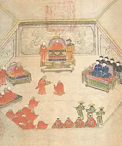 The nine-year-old Dalai Lama came down with a cold at the annual Monlam Prayer Festival.[1] He died in Tibet on 6 March 1815.[5] "The entire nation was plunged into sorrow", which lasted until the recognition of the new reincarnation eight years later.[6] His body was installed in a golden reliquary in the Potala Palace called Serdung Sasum Ngonga.[1]
