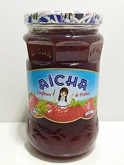 Aïcha is a Moroccan food brand, best known for its jams, tomato sauces, oils, olives, canned tuna, and harissa. The brand was founded in 1929 in Meknes by French entrepreneurs Paul Sibut and Neyron, and became one of the most iconic names in Moroccan households, with the help of its famous mascot, the little girl "Aïcha".