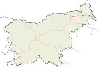 The A5 motorway (Slovene: avtocesta A5, Pomurski krak) of Slovenia is 79.6 km long. It begins at the Dragučova interchange on the A1 motorway north of Maribor and ends at the Hungarian border at Pince, continuing on in Hungary as the M70 motorway. It connects Maribor with Budapest.