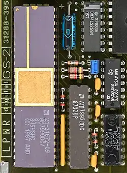 The Am7990 is an Ethernet media access controller (MAC) controller introduced in 1985.[1][2] LANCE, short for "local area network controller for Ethernet", is also the brand name for follow-up versions of the chip. Its architecture is the basis for AMD's PCnet family of highly integrated single-chip Ethernet controllers, which succeeded the LANCE family. The one exception is the Am79C940 MAC. The Am7990 chip was fabricated in NMOS technology and has no integrated Manchester encoder/decoder (ENDEC) nor does it have an integrated 10BASE-T transceiver.